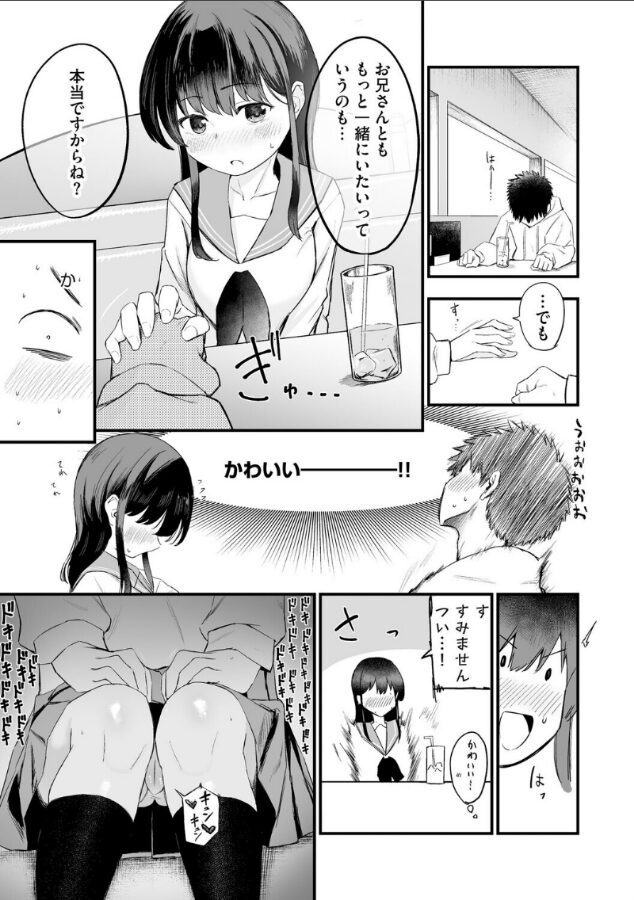 妹が受験の下見に友達と田舎から俺の家に泊まりにくることになった。久しぶりに会う友達の瑠美ちゃんには相変わらず避けられているようで気が滅入るが、いろいろ大きく育った部分に目が行ってしまっているのは事実なので避けられるのも仕方がない…。こんな子とひとつ屋根の下とか耐えられるわけがない!! 我慢の限界を迎え、寝ているふたりに隠れてトイレで瑠美ちゃんを思ってこっそりオナニーしていたらノックの音…。当の瑠美ちゃんがお話があるそうで…え? もしかして全部聞かれてた…?