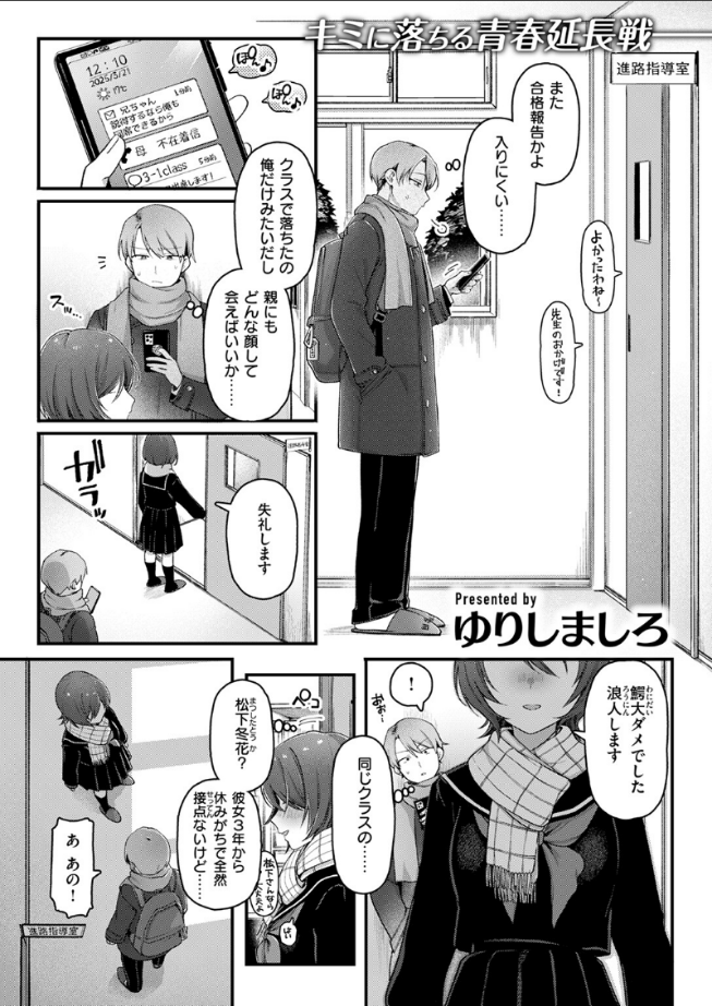 「…彼女には 落ち込んだ時《慰めて》と言うんですよ」同じクラスで2人だけ浪人を選んだことをきっかけに距離が縮まり、冬花(とうか)と付き合うことになったリク。可愛くて、自分とは違って模試の結果も好調。正直なんで付き合ってくれているかは分からない。そんな冬花に引け目を感じたリクが別れを切り出そうとすると、冬花はずっと隠していたえっちな下着を見せながら迫ってきて……。