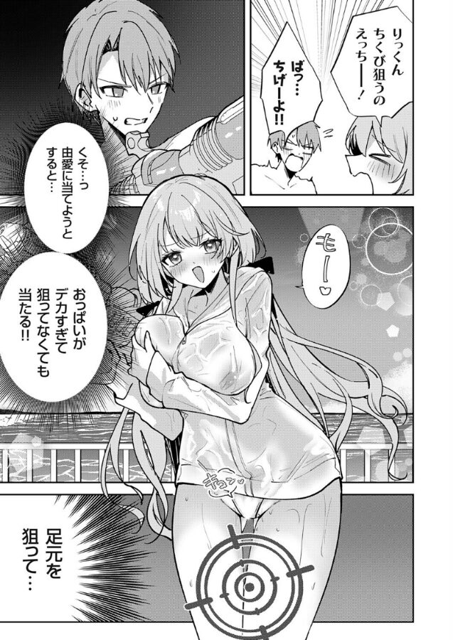令和のチクニージャンヌダルク・ちみやが描き責めるド淫乱爆乳彼女アブノーマルビーチクプレイinビーチ!!彼女の由愛(ゆあ)と夏休みの思い出作りで海に遊びに来た主人公。しかし目のやり場に困るエロ水着を着てきた由愛に早速困らされていた。人目もあるのでさすがにマズいと上着を羽織らせる主人公だったが、三度の飯よりセックスが好きな由愛はアオカンする事しか頭にない様子。さすがに今日くらいは健全に遊びたい主人公は水鉄砲でお互いに水をかけ合いっこして遊ぶ事を提案する。楽しそうと提案に乗ってくる可愛い由愛。ところが水をかけ合ってるうちに由愛から変な声が漏れ始める。なぜか主人公の水鉄砲から出た水が由愛の乳首近辺ばかりに当たっていたのだった。これはマズいと狙いを下半身に定めたところ、なんと股間に直撃してしまい立ったままイッてしまう由愛。なんでこんな事にと頭を抱える主人公はとりあえず由愛の頭からセックスを切り離すために新たなアイデアを思いついたのだが……。海の中にもエッチな刺激はいっぱい♪