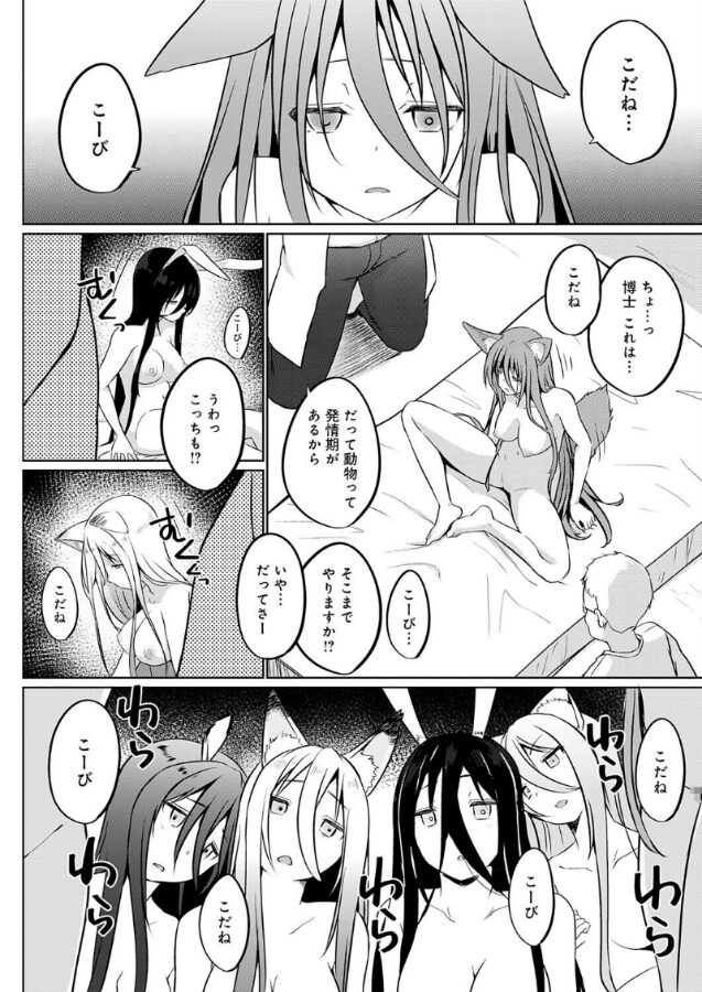 これは、人と獣のハーフ・獣人たちの誕生の物語──「ど… どうしよう助手くん… 出来ちゃったよ けもみみっ娘」培養槽にたゆたう獣人を前に、博士と助手はただ立ち尽くしていた。 自分たちは、なんという存在を作り出してしまったのか──!! 獣人たちを培養槽から取り出し、その身体をチェックする。おっぱいも、クリトリスも、処女膜も……すべて人間のように精巧。博士たちが体をまさぐっている最中、獣人たちがふと目を覚ます!!「こだね……こーび」そう呟き、博士たちの下半身に手を伸ばして──もちもちスケベ女子の帝王・かいづか先生が贈る、生まれたばかりの獣人娘ちゃんたちと大乱交☆