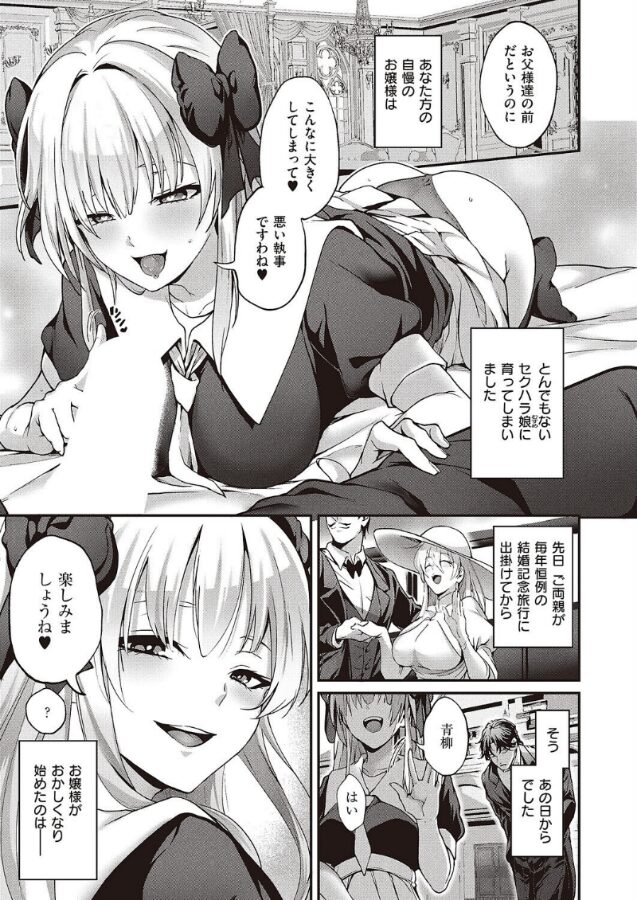 良いとこの令嬢でもある姫奈。さぞかし高貴なお嬢様であると思いきや、執事のおちんぽに夢中という内容です。しかし、すんでのところで本番挿入はしていない微妙な関係が続いている模様。「あー、そこは超えていないのか」と。どちらかというと、シンプルに淫乱セックスしまくっている設定のほうが個人的には好み。それでも本作では一線を超えるエッチシーンが用意されているとのこと。